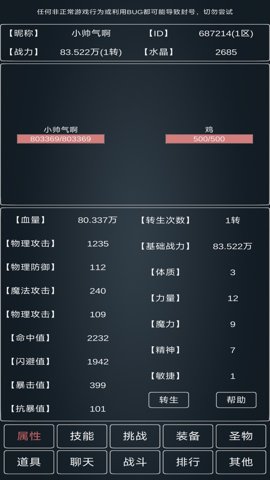 在魔物世界中,玩家将进入一个充满奇幻与挑战的冒险旅程。这款支持联机的放置文字MUD游戏,作为魔物系列的全新作品,带来了更丰富的剧情与玩法。游戏的核心依然是打魔物和刷圣物,但全新的联网模式让你可以与全球的玩家一起探索这个庞大的魔物世界。你将会体验到前所未有的自由搭配,选择不同的技能、魔物和圣物,打造独一无二的角色。随着游戏的深入,达到特定条件后,你可以转生,解锁更多的技能和装备,给你带来更多的策略选择和战斗体验。