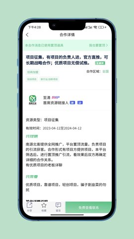 1、支持快速搜索功能,根据关键词迅速找到相关的创业项目和信息。