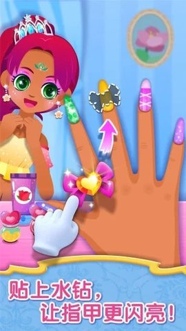 2、美甲设计是另一项重要的玩法,玩家需要仔细修剪公主的指甲,为她涂上亮眼的指甲油,并点缀个性贴纸和珠光水钻,让指甲闪耀夺目。