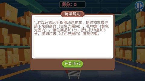 1、游戏的基本操作是通过滑动屏幕来控制购物车的移动,玩家需要迅速反应,确保收集到所有水果,避免它们掉落。