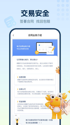 螃蟹账号代售手机版具有众多亮点,首先是交易安全性高,每笔交易均签署电子合同,保障用户的合法权益。平台支持双向实名认证,确保交易双方身份真实可靠,建立在信任基础上的交易更加安心。平台海量账号每日上新,涵盖了市面上热门的手游和端游,无论是经典游戏还是新兴热门,都能在这里找到。平台还提供找回包赔服务,若账号发生找回情况,用户可以获得及时的支持,确保买家的0损失。