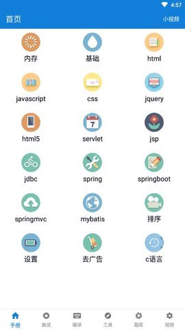1、首先,打开Java学习手册,进入主界面,你会看到多个学习模块的选项。