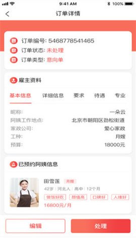 4、雇主收到申请后,可以查看家政阿姨的详细信息,决定是否接受。