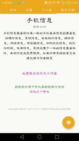 2、随时随地查看系统和软件信息,掌握手机的运行状态,及时发现潜在问题。