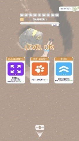 3、游戏中设有丰富的工具升级系统,玩家可以不断获得新工具,提升挖矿能力,让每一次挖掘变得更加高效。