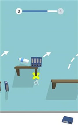 在水瓶转转乐中,玩家通过轻触屏幕来控制水瓶的跳跃,简单的操作让人上手迅速。每当您轻触屏幕,水瓶就会向上跳跃,您需要准确把握时机,以便在空中做出翻转动作。随着游戏的进行,您会遇到不同的物体,如桌子、椅子和低音炮等,利用这些物体进行跳跃,展示您的技巧。