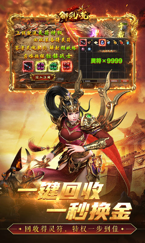 2、上线即赠送灵符特权,玩家可以通过回收装备获得灵符,帮助提升角色的战力,轻松获取神装。
