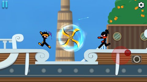 决斗火柴人2是一款经典的格斗对战游戏,玩家可以体验到趣味十足的格斗对战玩法。游戏支持与朋友进行联机对战,也能选择单机模式进行游戏。操作简单,玩家通过方向盘控制角色行动,按住并拖动可进行攻击。巧妙利用技能将对手击飞,达到战胜对手的目的,带来无尽的乐趣。