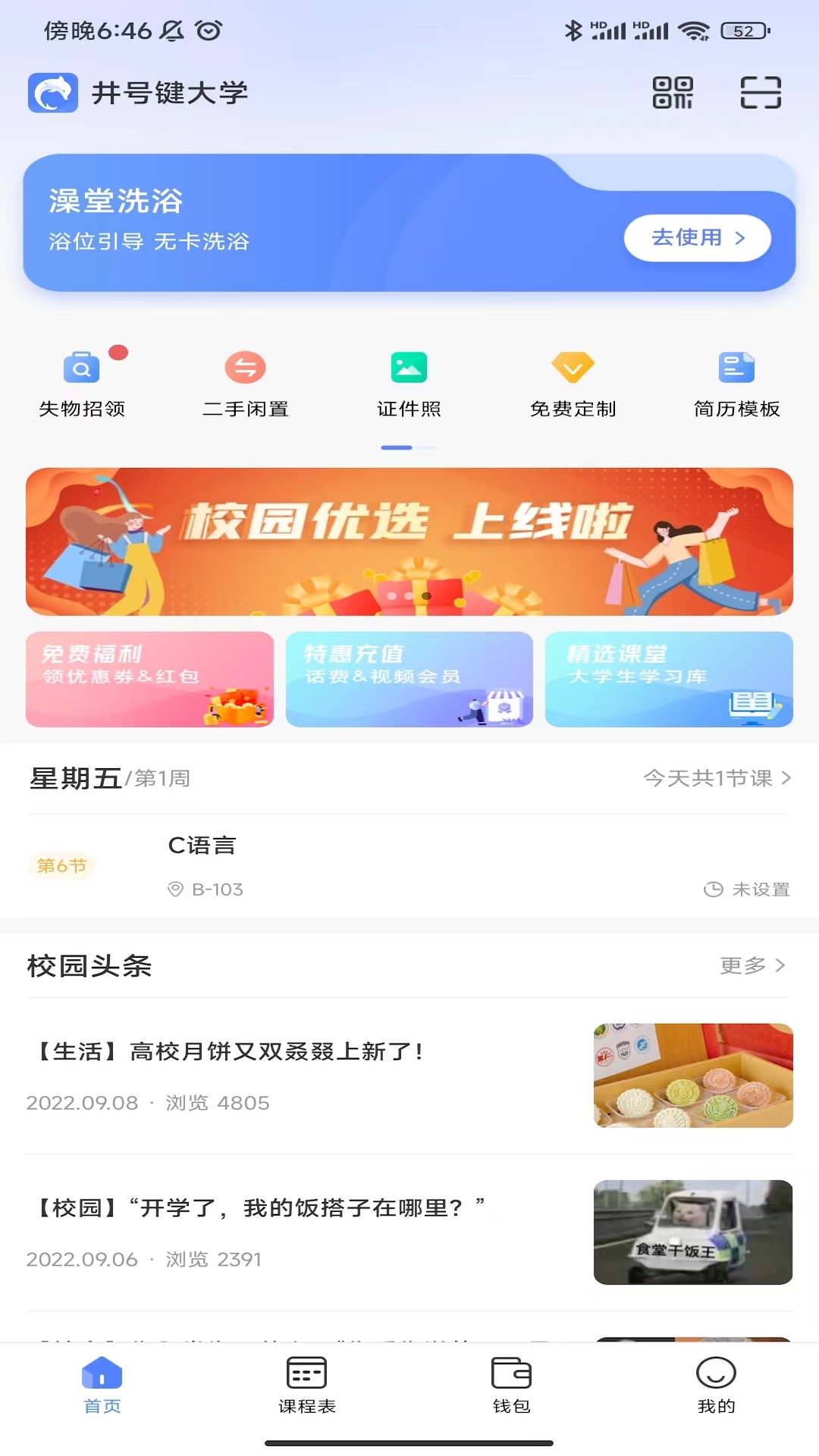 3、登录成功后,在首页看到各种校园服务的选项,选择自己需要的服务,洗浴服务。
