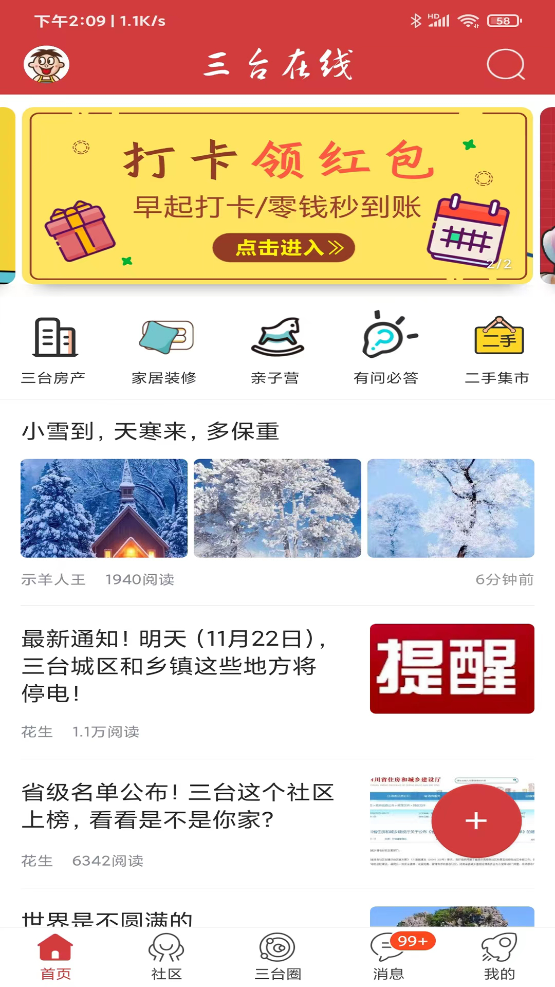 1. 下载并安装三台在线App,打开应用后,用户将看到主界面,包含新闻、生活、社交等多个模块。