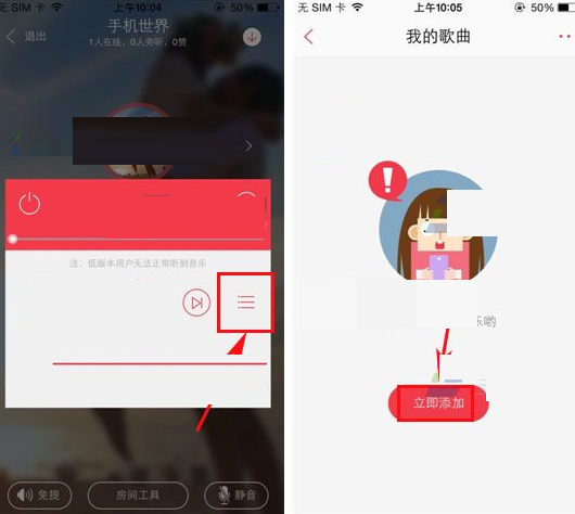 进入音乐界面后,点击右侧的【三横】图标(即菜单或歌单列表),然后选择【立即添加】按钮。