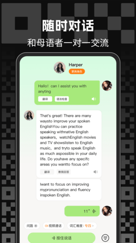 1、无需预约的24小时AI外教对话服务打破时间限制,使用者随时可开启高清视频会话进行沉浸式口语演练。