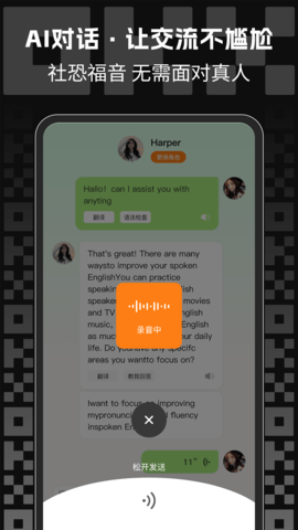 2、即时词典功能在对话界面轻触生词即可获取标准发音示范、英汉双解释义及语境化例句展示。