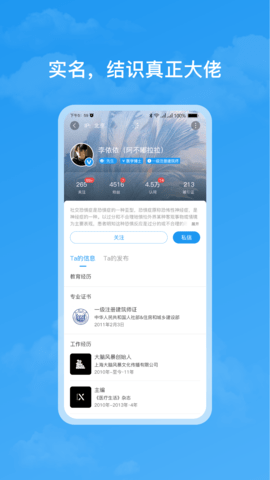 2、用户的履历清晰可见,让其他用户更好地了解其背景和专业领域,从而建立起更加真实的社交关系。