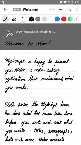 MyScriptNebo是一款极具实用性的手机笔记软件,旨在满足用户记录和管理笔记的需求。无论是学生、职场人士还是任何需要整理信息的人,都能在这款软件中找到合适的工具。MyScriptNebo不仅支持将笔记以电子文档的形式分享给朋友,还能通过丰富的笔刷和颜色选项,让每一份笔记都充满个性。此外,它支持多种语言,确保用户在使用时没有语言障碍,并且能够插入图片、超链接、PDF文档以及视频等多种文件格式,使得笔记内容更加生动和多样。
