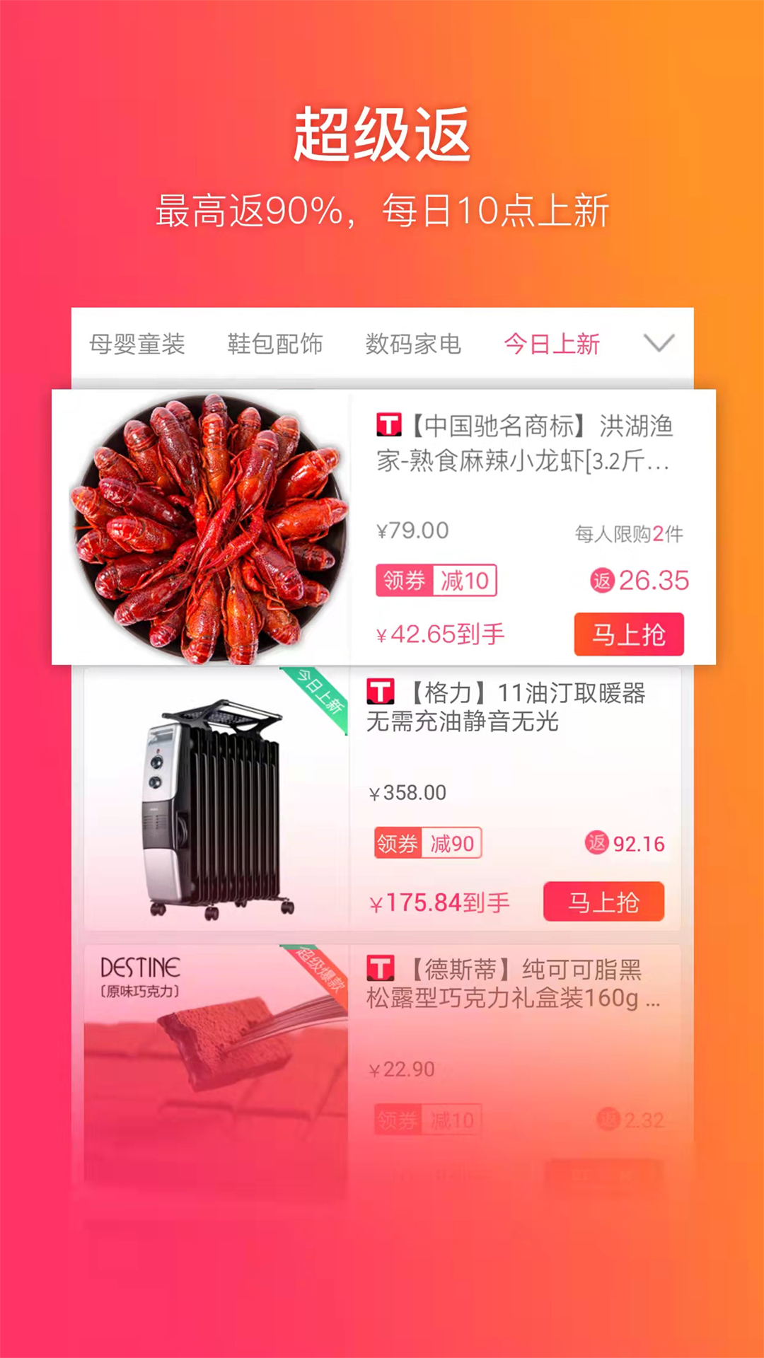 2. 超级返:每日更新上千款优质商品,找到最新的优惠券和高额返利,确保每次购物都能享受最大实惠。