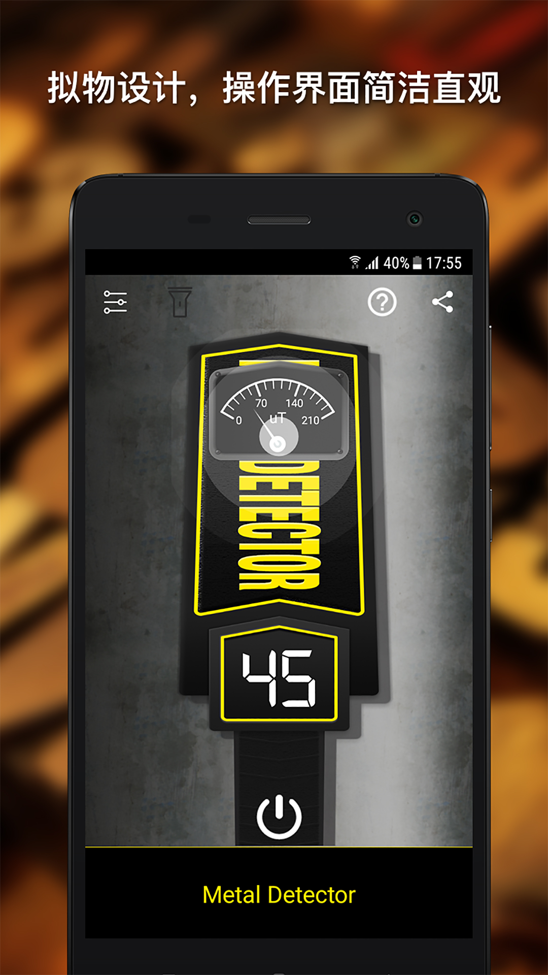 1. 下载并安装金属探测器应用,打开后进入主界面。