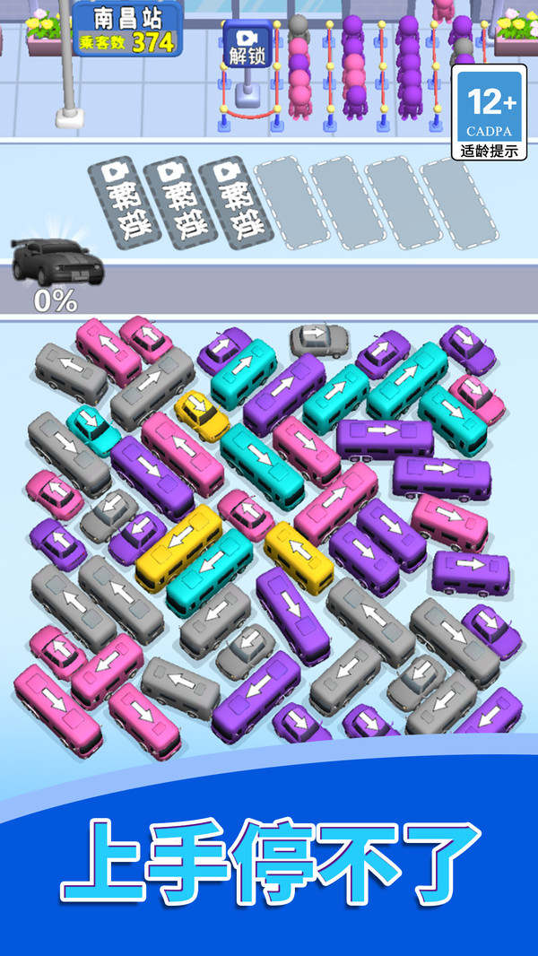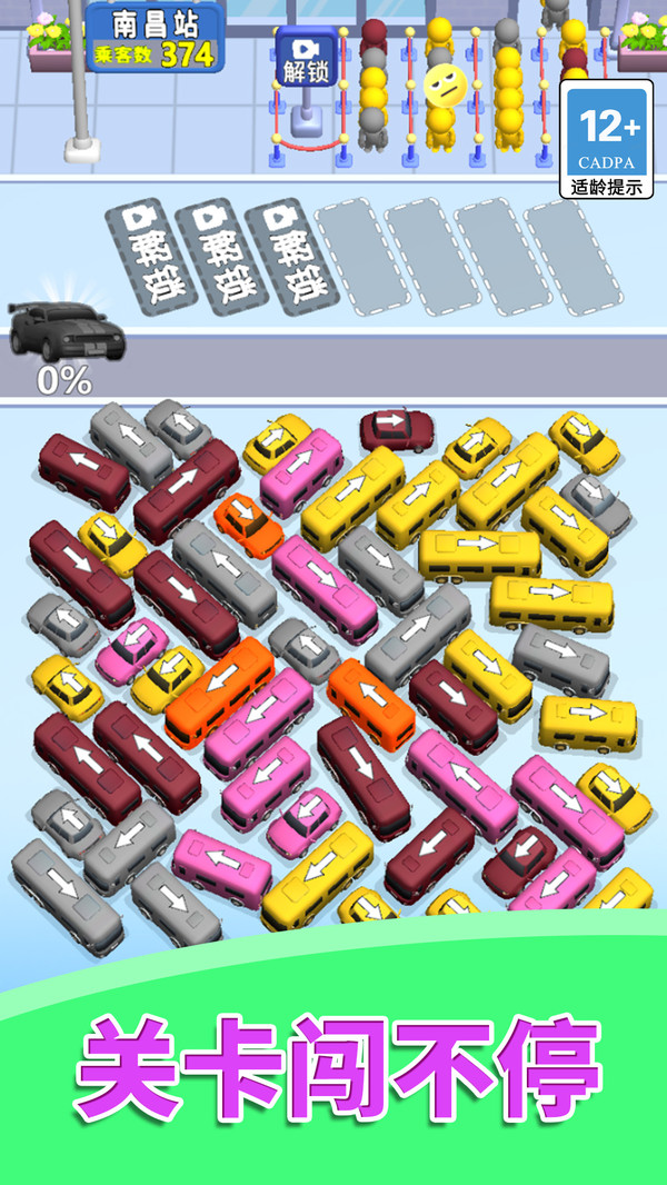 1、每当乘客进入车库时,玩家需要迅速观察他们的颜色,并在众多车型中找到匹配的车辆。这个过程需要快速的观察力和判断力。