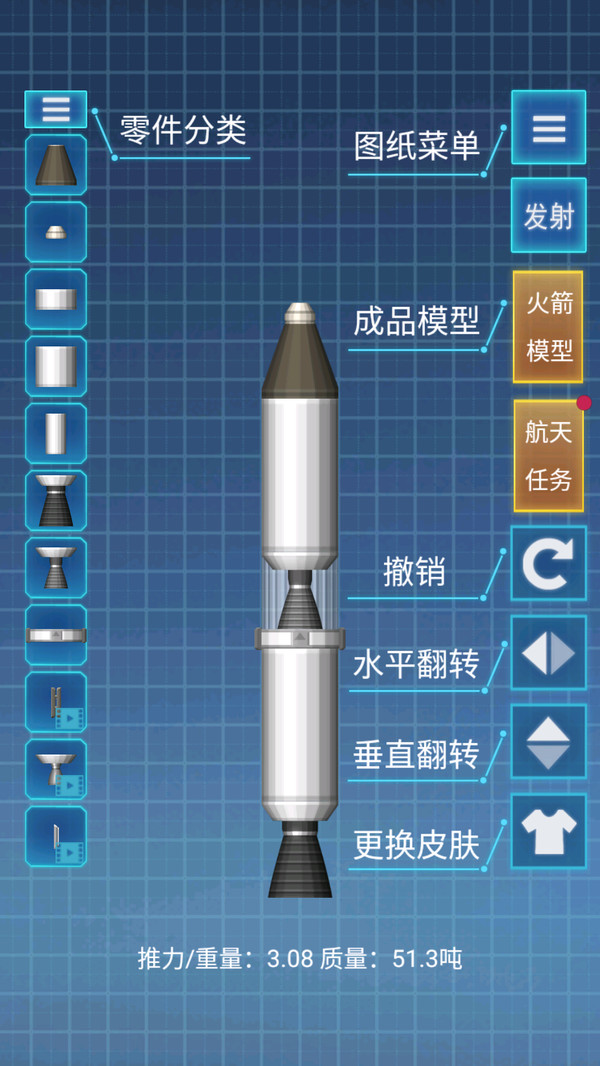 1、在设计火箭时,玩家需要根据任务要求选择合适的零件,包括发动机、燃料箱和机身等。合理的组合能够提升火箭的性能,增加发射成功的几率。