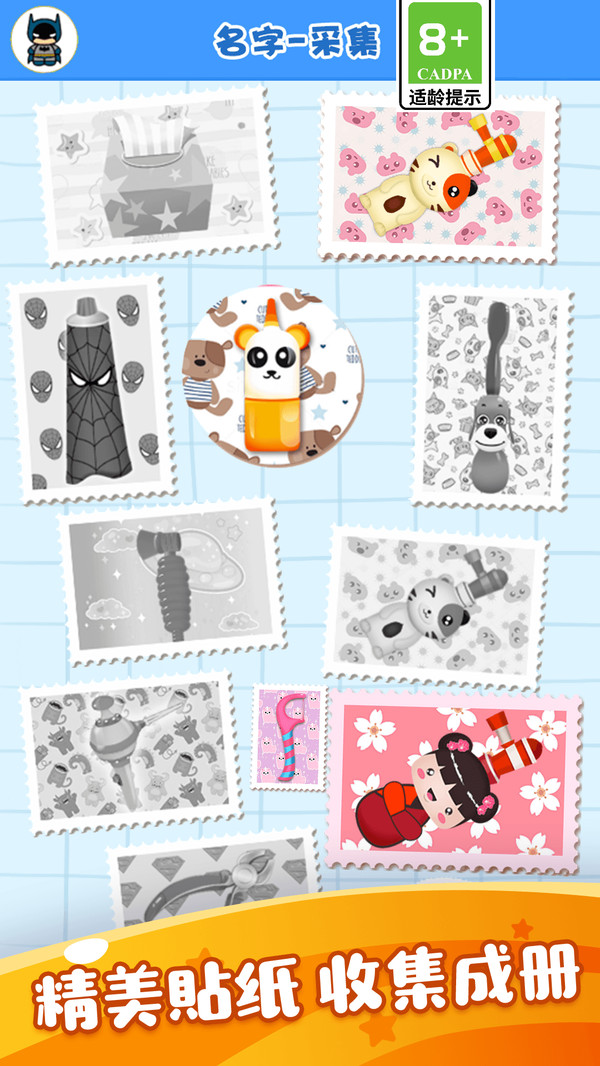 3、治疗完成后,为宝宝选择不同的牙套和贴画,进行个性化设计。通过解锁更多的设计元素,为每个宝宝打造独特的笑容。