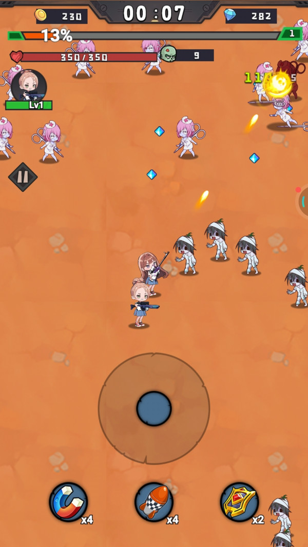 2、玩家需要通过双摇杆控制角色的移动与射击,灵活躲避敌人的攻击,利用技能进行反击。掌握好技能的使用时机,可以有效提高战斗的胜率。