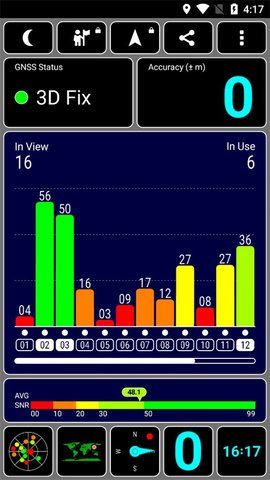 4、通过圆形坐标图,直观地查看卫星分布和定位信息,帮助更好地理解周围环境。