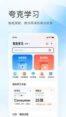 夸克大学通是一款专为大学生打造的智能学习工具,内置于夸克浏览器中,旨在帮助学生应对学习过程中的各种挑战。它汇聚了丰富的学习资源,包括教材解析、名校课件、开题报告、论文期刊以及考研真题等,致力于为大学生提供全方位的学习支持。无论是查找资料、撰写论文,还是备考考试,这款应用都能有效提升学习效率,帮助学生更好地掌握专业知识。