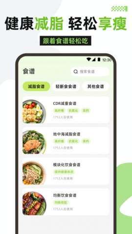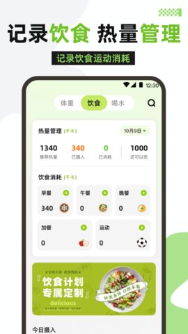 3、内置了饮食记录模块,允许使用者快速添加三餐内容,对每日的营养摄入有一个大致的估算。