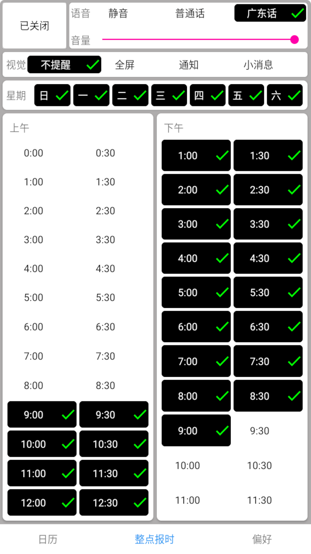 3. 语音提醒:选择普通话或粤语语音进行时间提醒,增加了使用的趣味性和灵活性。