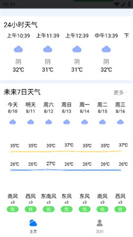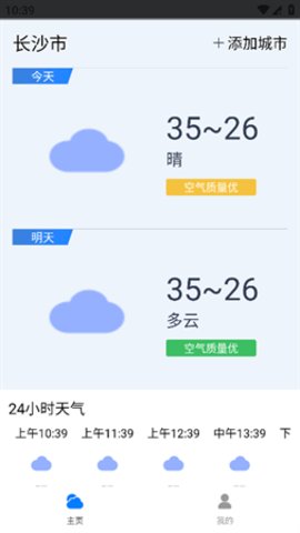 1、打开曹操天气App,用户将看到首页展示的当前天气信息,包含气温、天气状况等。