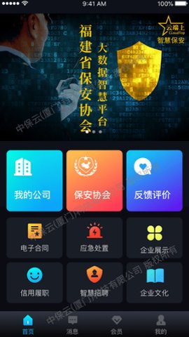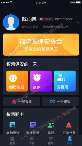 1、首先,下载并安装中国智慧保安app,打开应用后进入主界面。