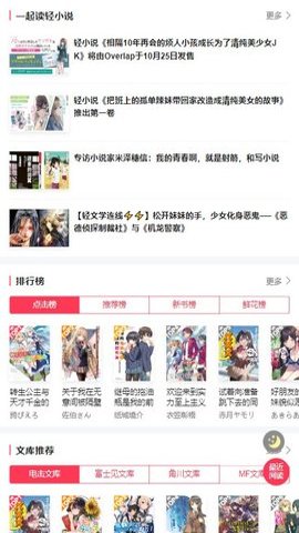 1、首先,下载并安装电击文库轻小说app,打开后你会看到首页展示的热门小说推荐。