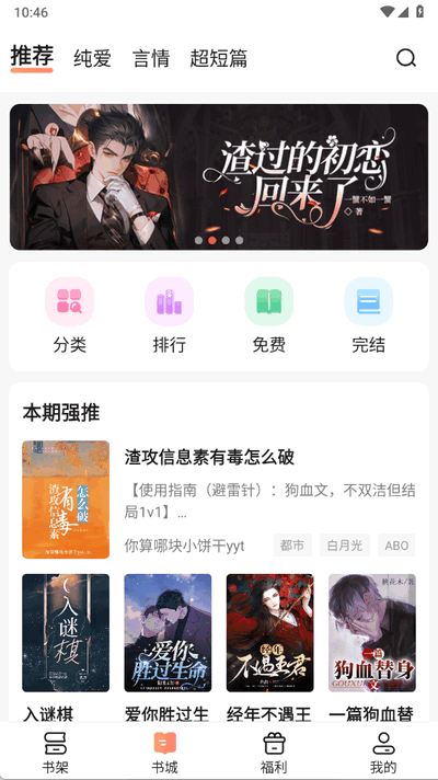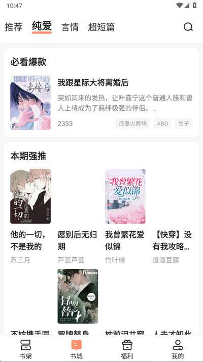 1、下载安装App后,打开软件进入首页,用户会看到书城页面,浏览各类小说资源。