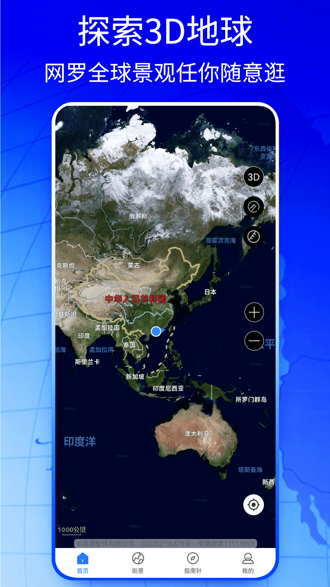 1. 3D卫星地图展示:通过3D视角查看全球各地的地形和建筑,感受不同地区的自然与人文风貌。