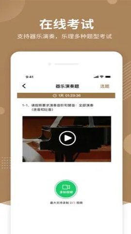 3、从注册登录、报名考试、录制视频到成绩查询,全部可以在线一键搞定,让考级流程变得轻松和方便。