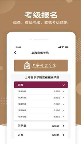 2、 上音考级app提供了快捷的线上报名缴费流程,使考试更加便捷和简单。