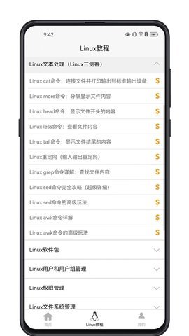 1、下载并安装Linux学习宝典应用,打开后进入主界面。