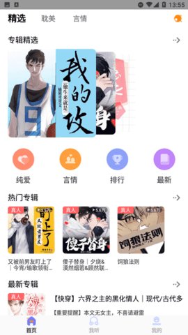 2、 快听FM提供了丰富多样的听书内容,包括耽美小说、纯爱小说、同人小说等等。