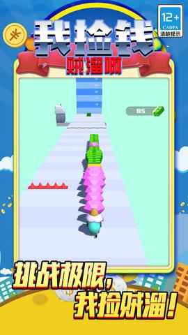 2、与许多同类游戏不同,玩家在捡钱的过程中不仅要关注前方的障碍物,还需灵活运用道具,选择最佳时机进行操作,增加了游戏的深度与挑战。