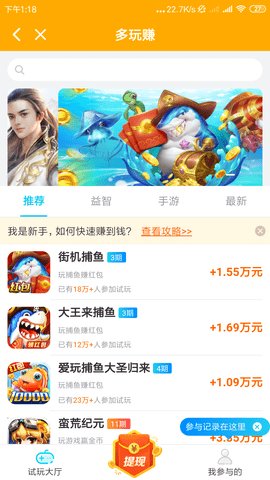 1、丰富的游戏任务:每天提供超过20个游戏任务,随时选择试玩,赚取零花钱。