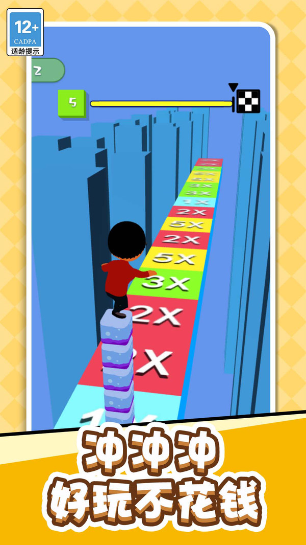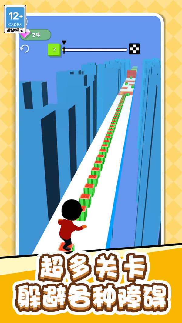 1. 玩家通过灵活的操作在赛道上奔跑,并在适当的时机拾取方块,形成稳固的基础,提升自己的高度,挑战更高的目标。