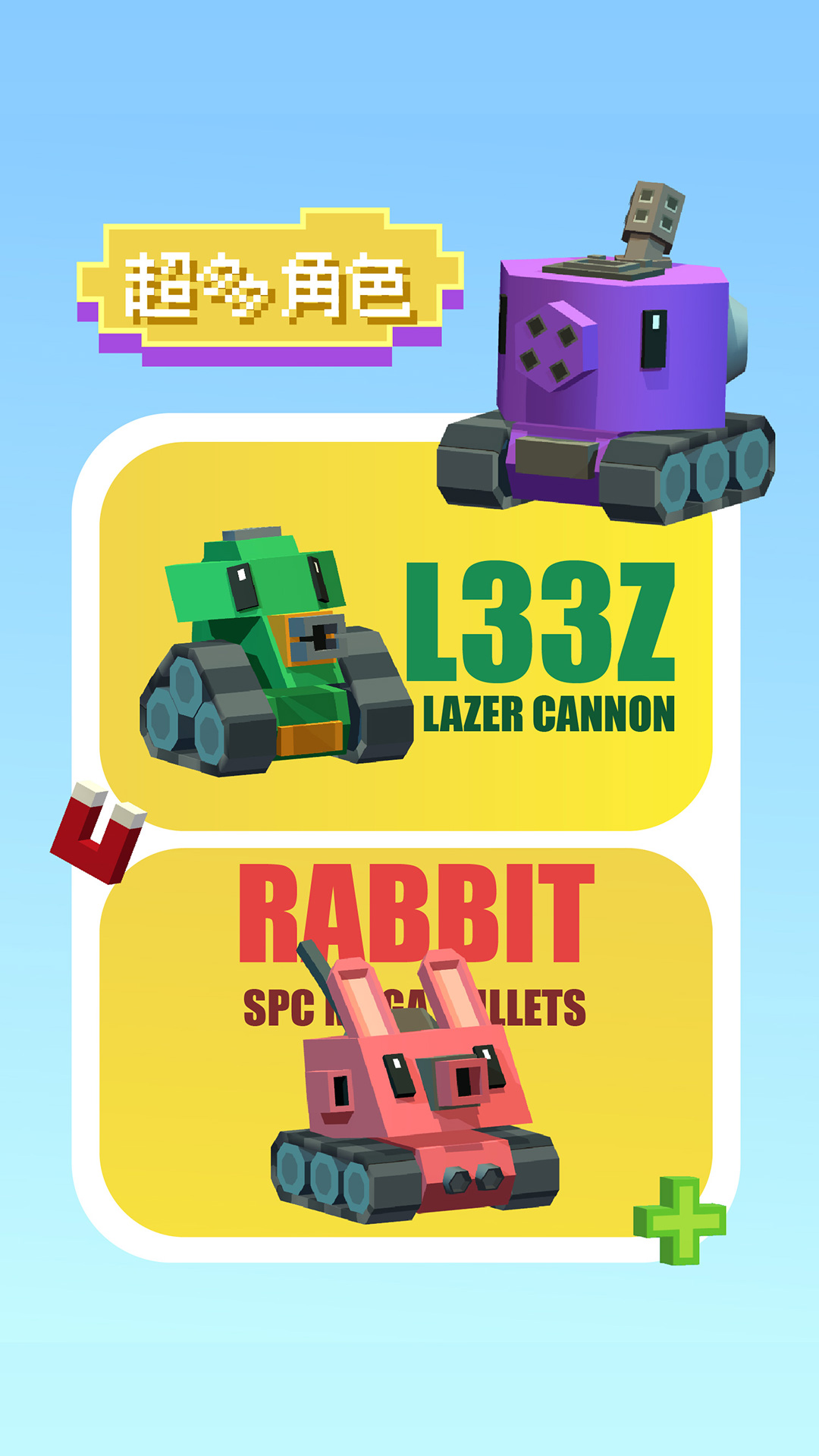 像素坦克是武汉墨竹互娱网络科技有限公司旗下的一款融合了3D像素风格、跑酷和射击元素的休闲游戏,玩法十分简单却又极具挑战性。玩家可以通过手指轻松驾驶坦克,滑动屏幕来操控坦克的移动和射击,目标就是快速消灭敌人,获得高分。坦克种类繁多,每一种都有独特的性能和武器,玩家可以根据自己的喜好和战术选择合适的坦克来进行战斗。在这个充满乐趣的像素世界中,玩家不仅能享受到射击的快感,还能体验到策略和反应的双重挑战。