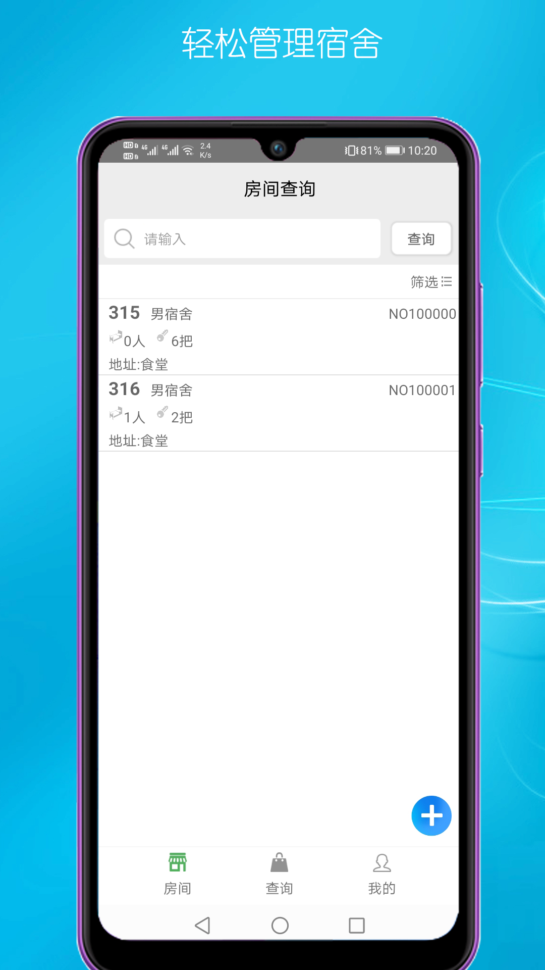 宿舍管理是一款专为学校和企事业单位设计的管理软件,提供高效、便捷的宿舍管理解决方案。它能够帮助用户轻松处理宿舍信息的录入、修改和查询,简化入住和搬出等管理流程。无论是高校学生宿舍还是企业员工宿舍,都能满足不同场所的需求,解决日常管理中的繁琐问题,提升管理效率,确保宿舍资源的合理利用。