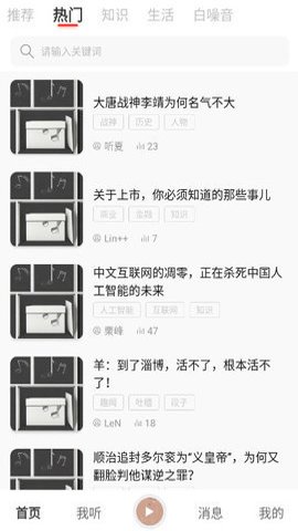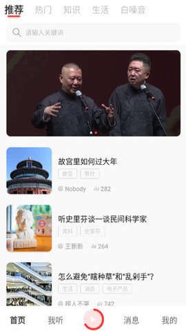 2、在主界面上,用户会看到各种推荐的有声内容,点击感兴趣的节目。