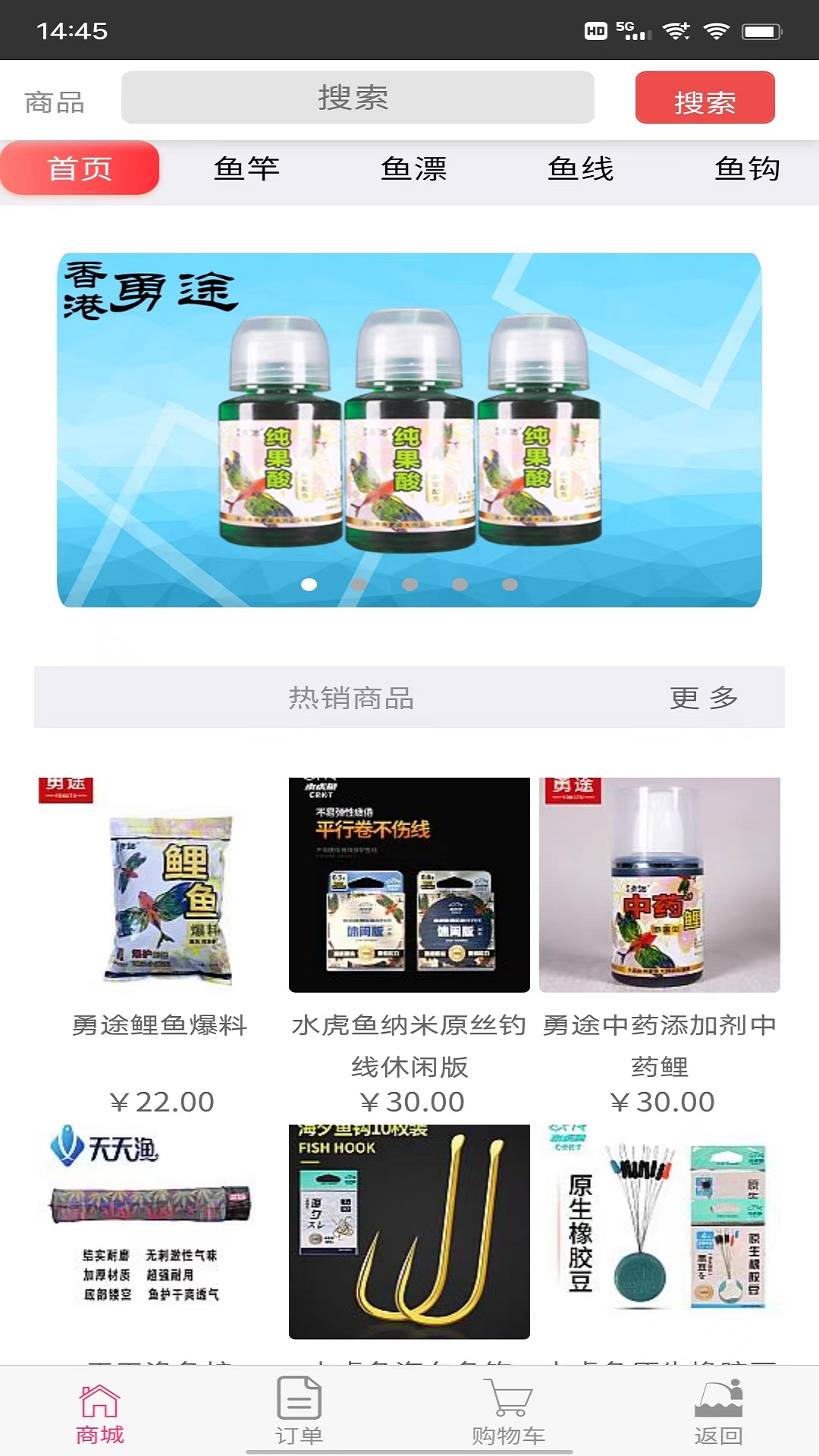 3、如果你想购买渔具,可以点击商城,在这里你可以查看到各类渔具的详细信息,选择心仪的商品进行购买。