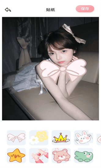 2、点击选中的贴纸,会自动附着在画面中,用手指拖动可以调整贴纸的位置和大小。