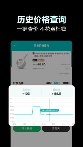 2、查询历史价格的功能比较直观,以图表形式展示价格波动,能清楚看到商品近期的低价和高价出现在什么时候。