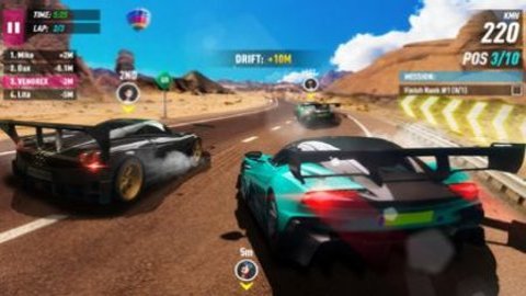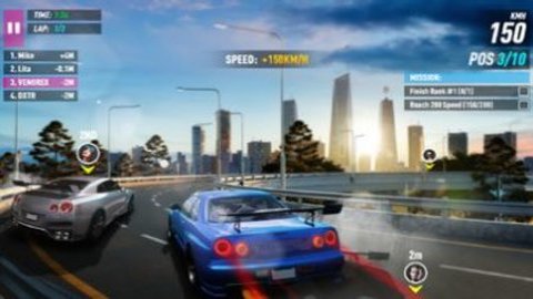 2、除了传统的竞速模式,玩家还可以参与限时赛和对战模式,挑战其他赛车手,争夺排名。