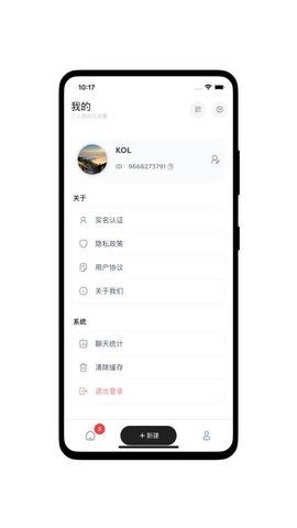 1、完成注册并登录后,主界面会显示通讯录与最近会话,点击添加按钮,输入对方的完整账号即可发送好友请求。