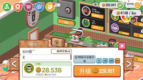 4、玩家可以通过不断开设柜台和升级经理来增加收入,逐步实现咖啡店的辉煌发展。